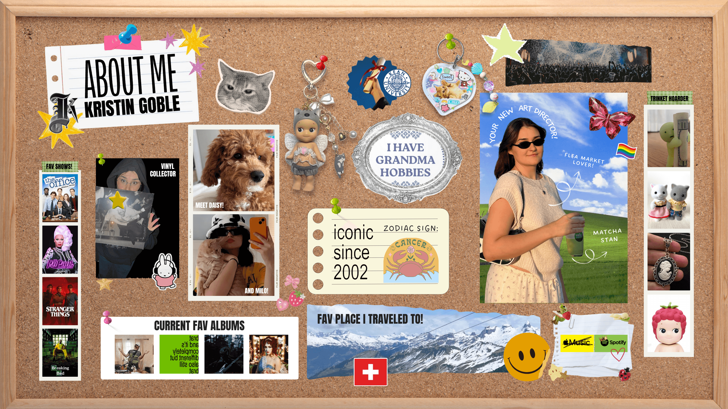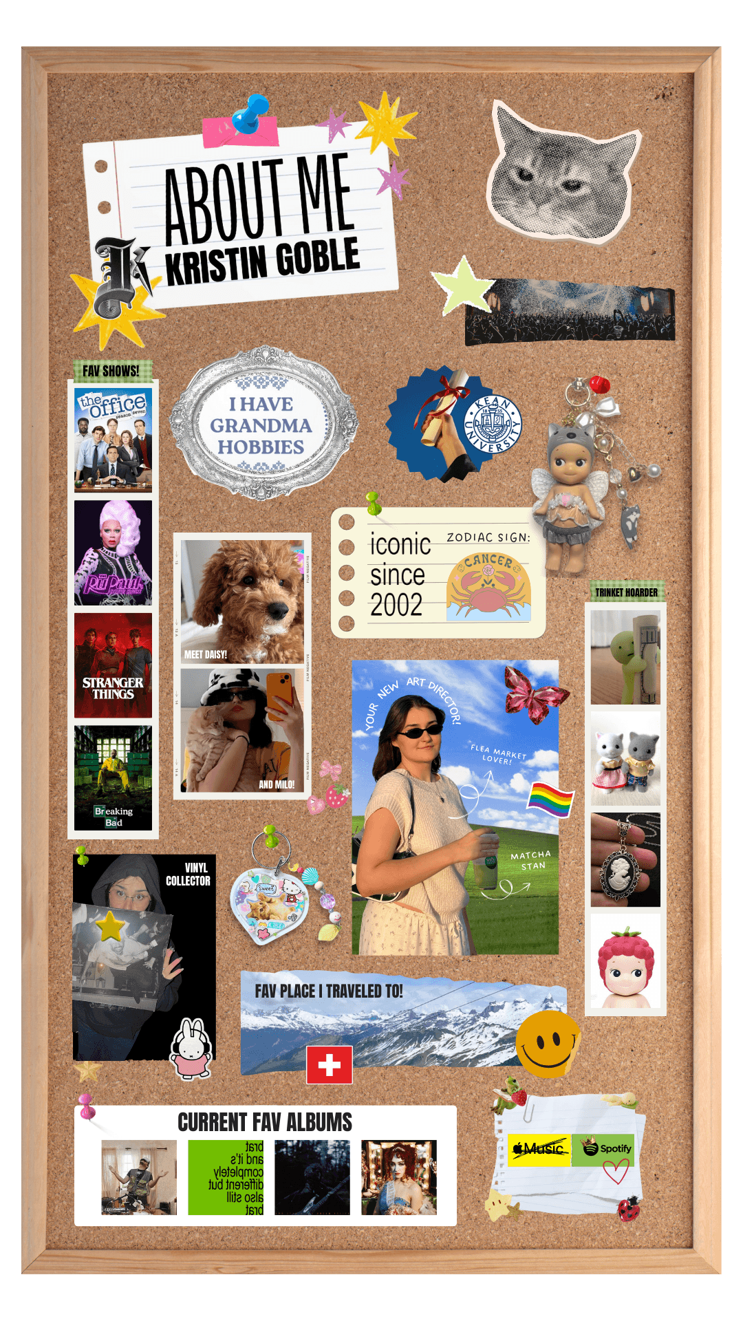 Hello! I’m Kristin, your new Art Director and a 2024 graduate of Kean University. I’m driven by bold ideas. I love bringing people’s visions to life through concepts and visuals. I’m constantly curious and creating. My designs are inspired by chaotic, expressive typography and experimental design. When I’m not designing, I’m 99.9% always listening to music most of the time (happy to share recommendations over email). Looking forward to creating with ya!