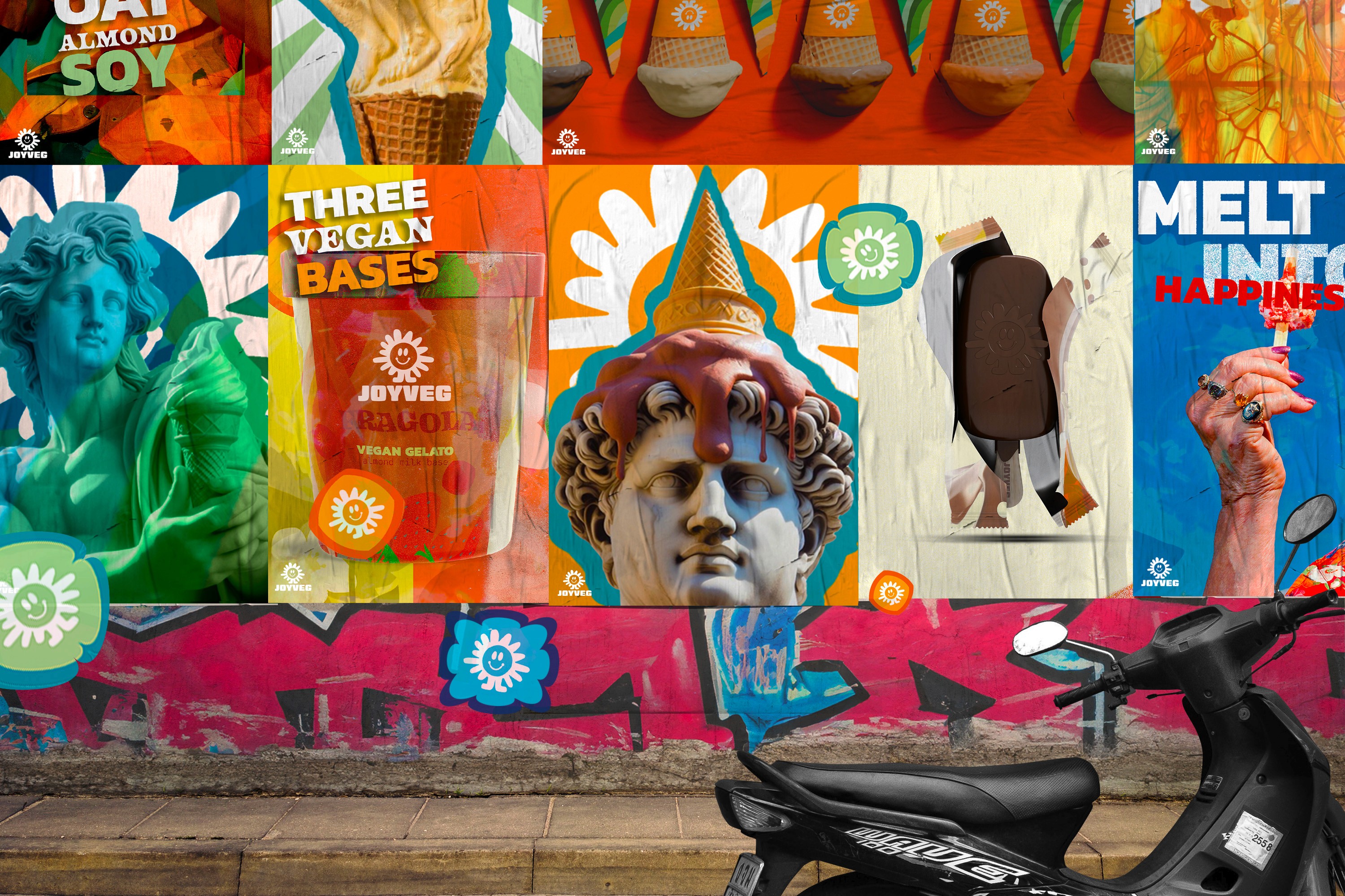 Creating a rebrand inspired by Italy in subtle ways. A campaign calling on all creatives to bring the joy back into JoyVeg. A brand that's fun, approachable, and makes vegan ice cream your new go-to indulgence.