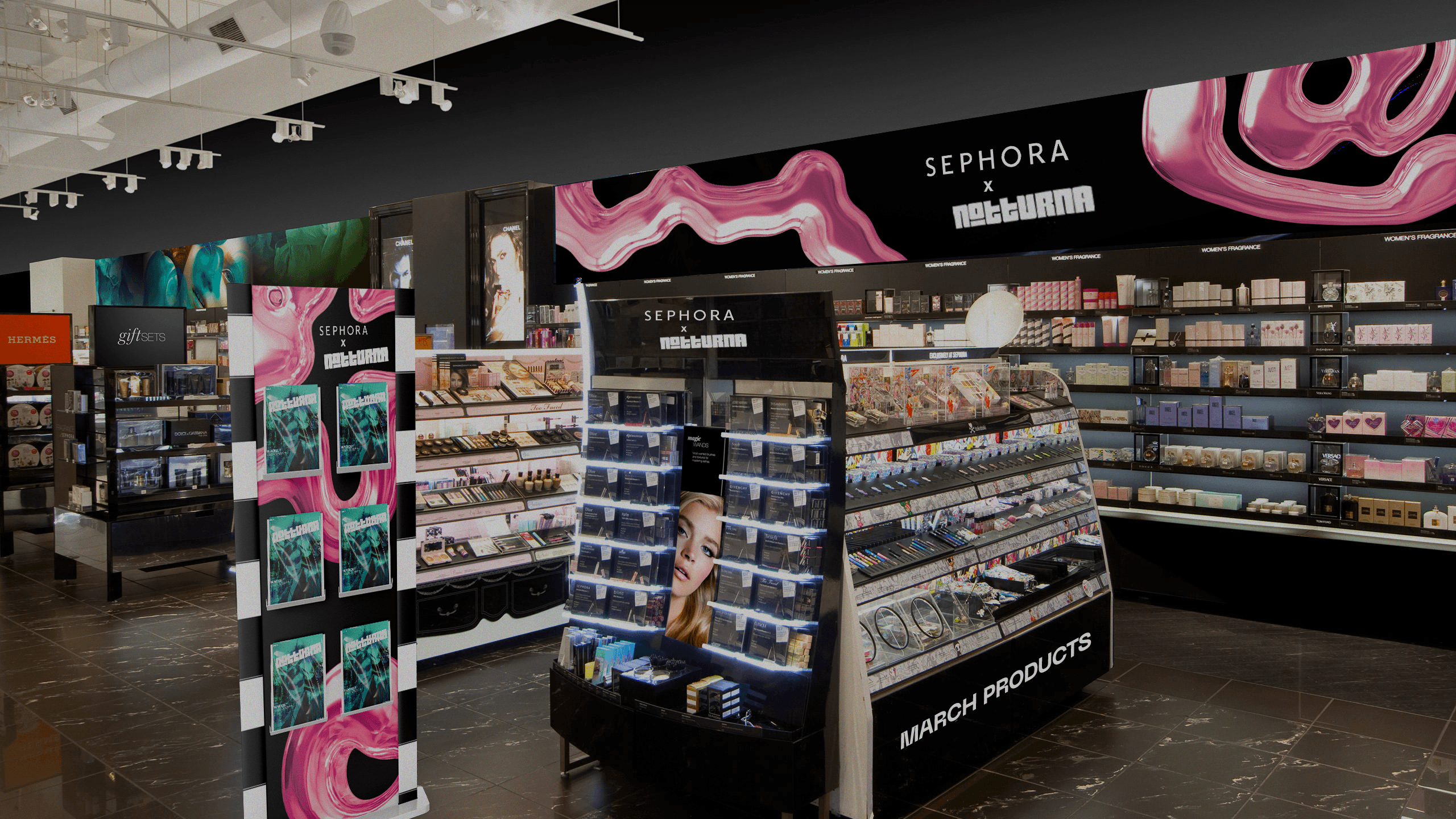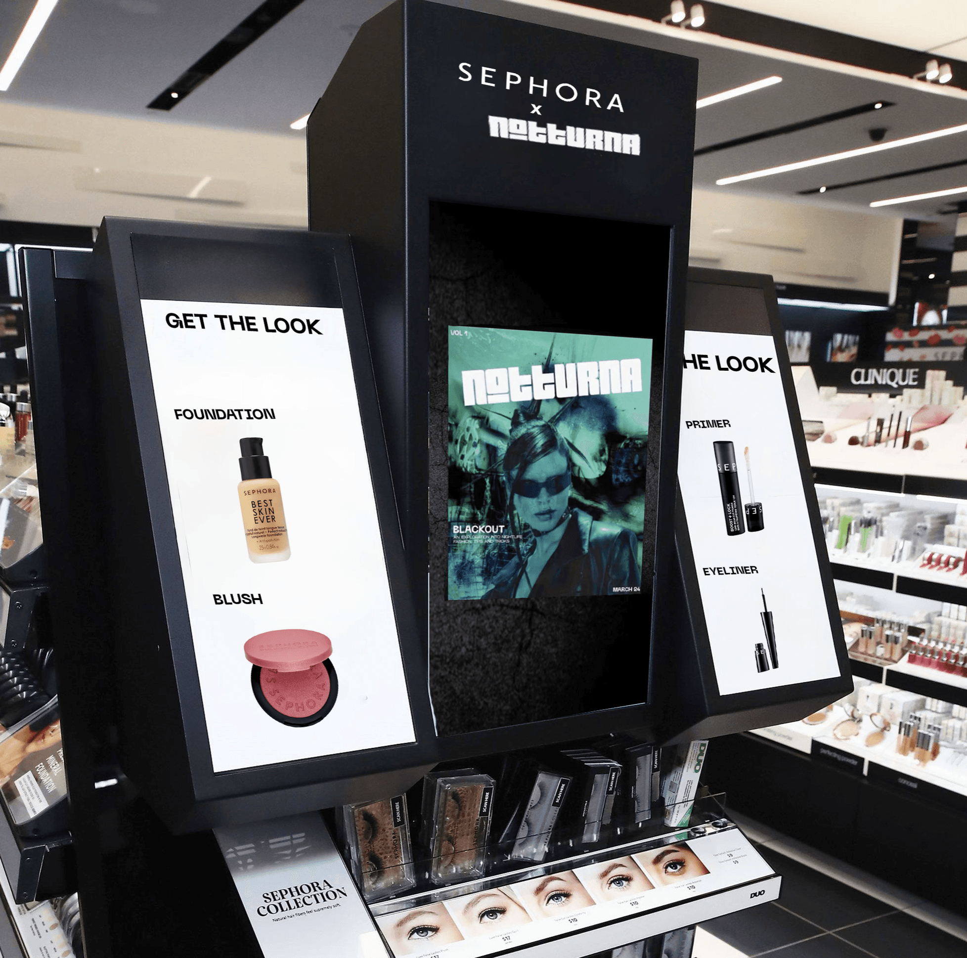 Notturna is a mock magazine focusing on beauty and fashion news. Sephora, one of the largest makeup stores globally, offers a wide range of products, including their own Sephora makeup line, which often gets overlooked. How can Sephora showcase their own makeup line as prominently as their other brands?